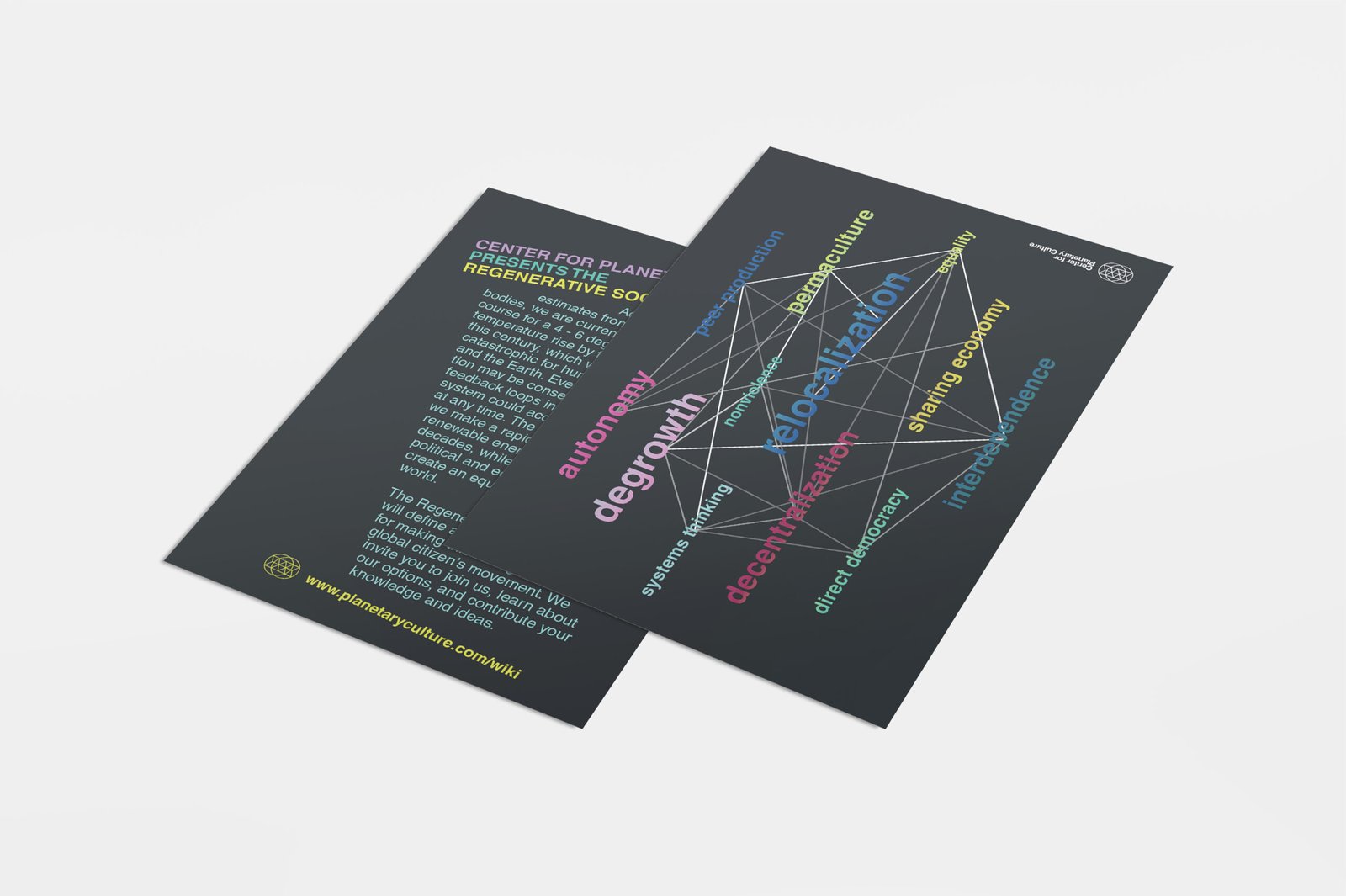 I designed the identity, print materials, social media content, and website for the Center for Planetary Culture. The geowire logo, along with colorful imagery, was created to raise awareness of natural ecosystems and environmental issues, emphasizing the center’s mission of cultural interconnectivity and ecological awareness. The cohesive branding materials strengthen the organization’s visual identity and overall impact.