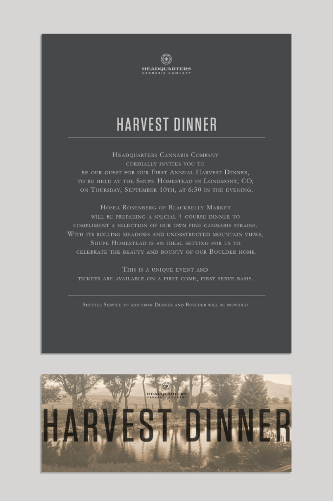 We collaborated with the Blank Space agency to create event design materials for a harvest dinner hosted by a Denver-based lifestyle company. The design featured a warm and relaxing ambiance, combining upscale elements with decorative, vintage-inspired touches to create an inviting and elegant atmosphere.