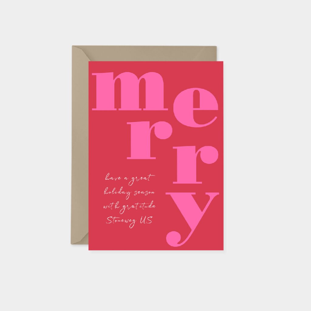 I designed a range of materials for Stoneweg US, including advertisements, invitations, web pages, a micro-site, and a holiday card. Included here are the holiday card designs I created for them. These cards incorporate their brand elements such as color and font style, showcase illustrations of their development projects, and feature holiday illustrations, geometric minimalist patterns, typographic concepts, and modern typography.